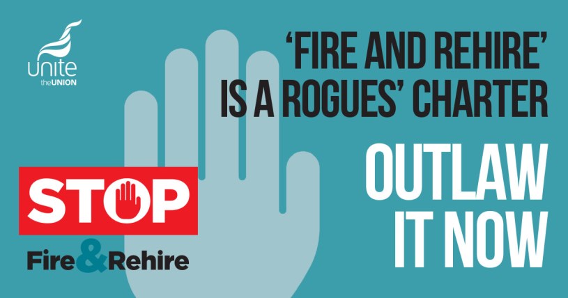 Yesterday Unite launched a campaign to change the law to introduce specific legislative prohibitions against fire and rehire, a campaign I am sure the whole trade union will get behind in the coming months.